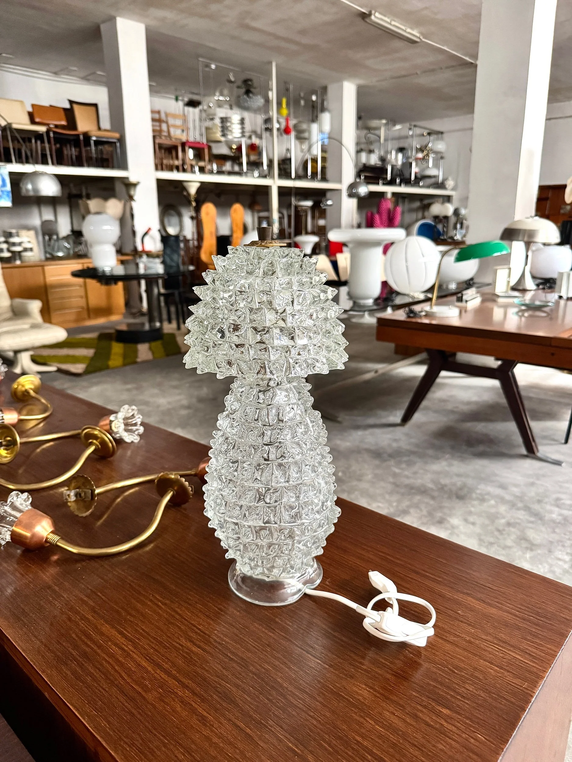 Lampada da tavolo in vetro di Murano lavorazione rostrato, Barovier & Toso, anni ’40.