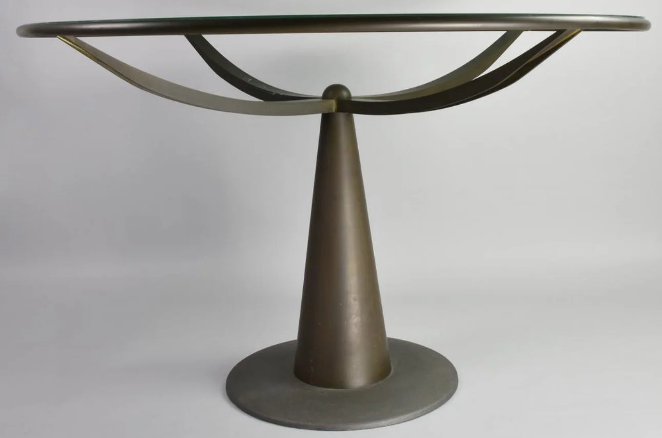 Tavolo consolle allungabile con struttura in metallo e finitura laccata nera, anni ’80.