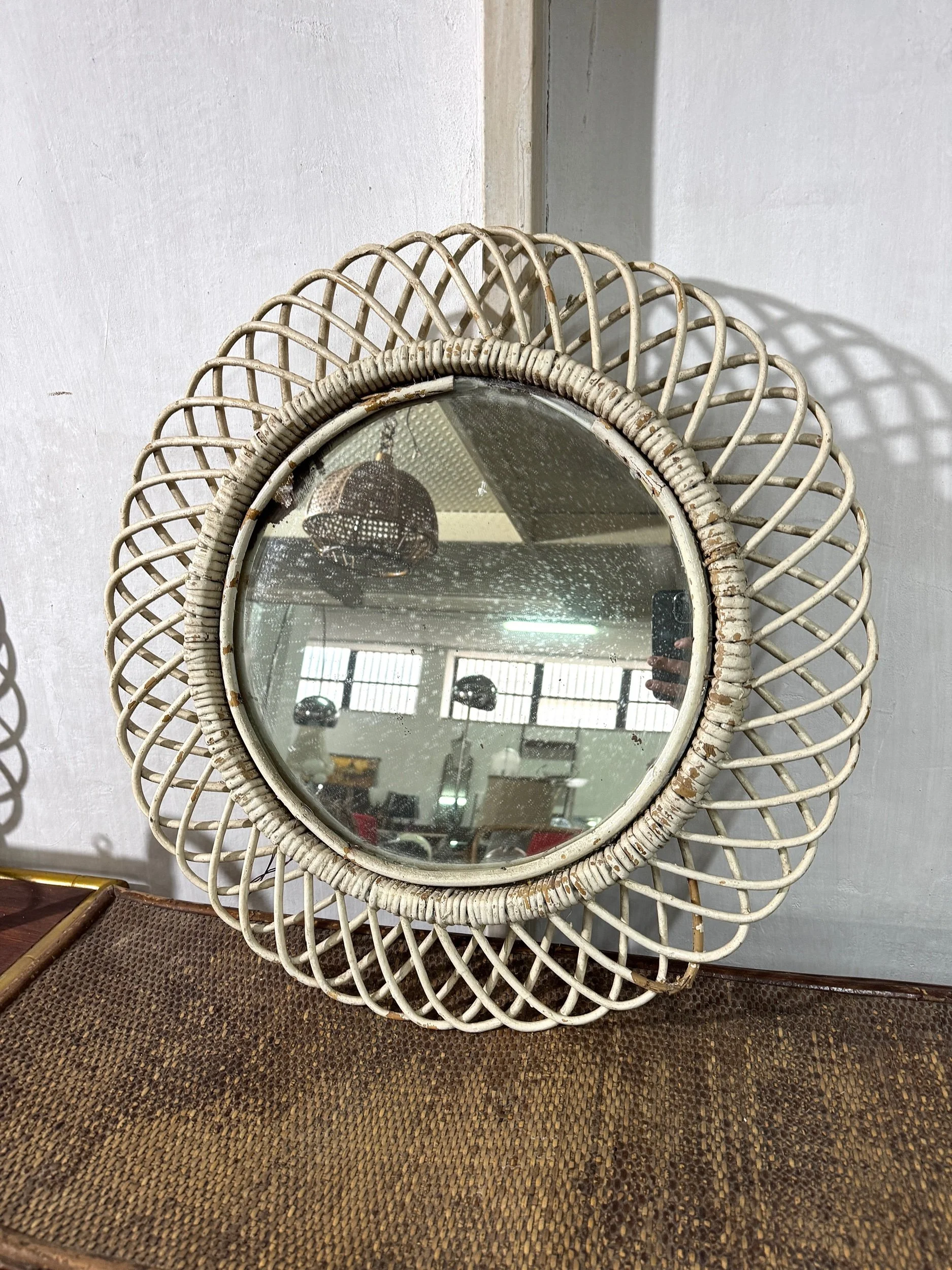 Specchio circolare in ottone nichelato, anni '70