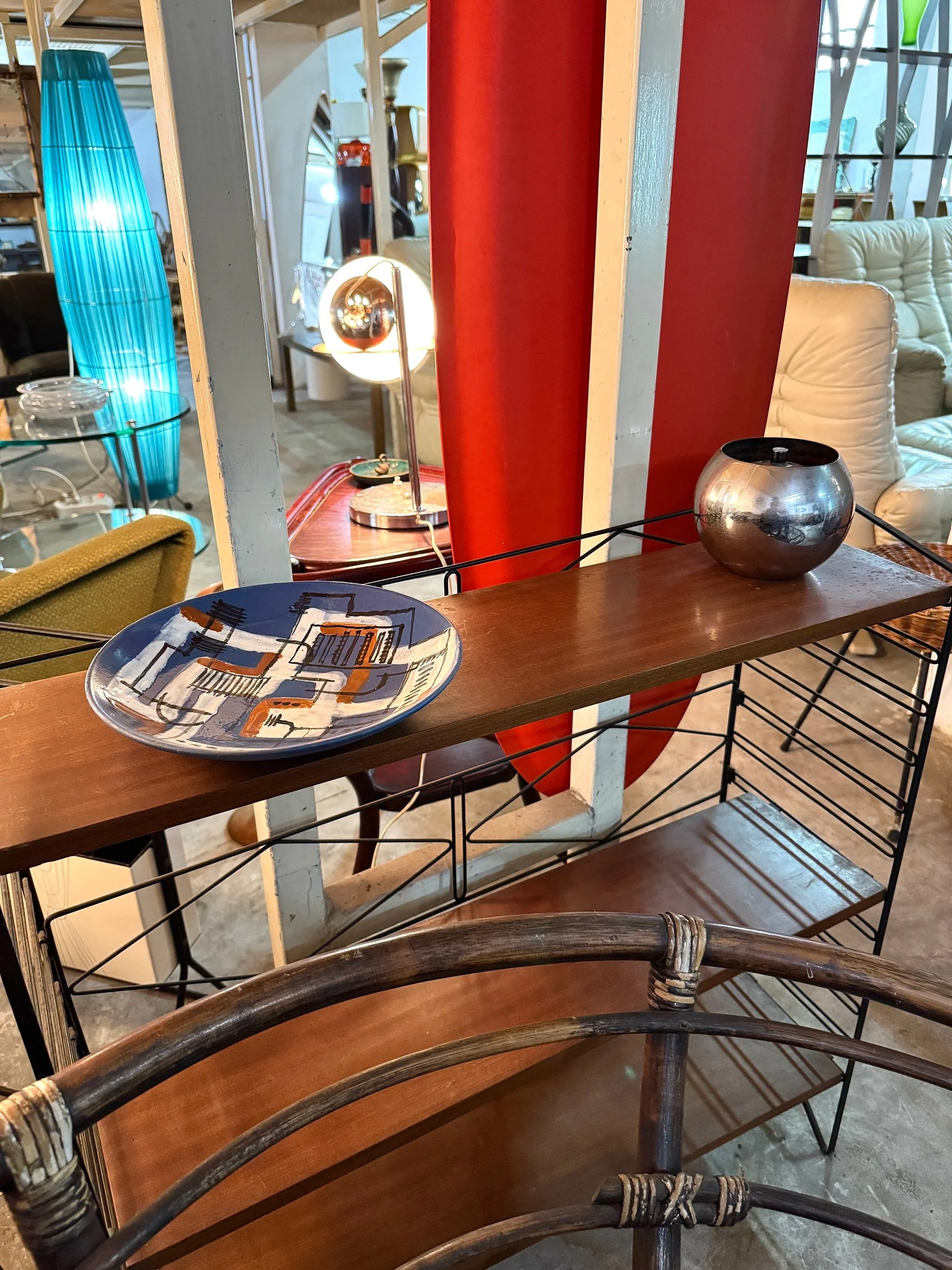 Manifatture italiane ed europee. Lo showroom ospita una collezione eterogenea di oggetti da tavolo e da collezione del periodo mid-century: vetri di Murano, sculture in bronzo e ceramica, profumatori, fermacarte, piatti decorativi in stile Fornasetti, oggetti pubblicitari, pesi di carta in vetro soffiato, orologi da tavolo in plexiglas e molto altro. Ogni pezzo è selezionato singolarmente per qualità e autenticità.